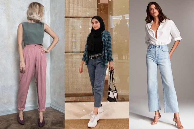 Celana high waist memiliki beragam model memgingat hanya bagian atasnya yang menjadi center.